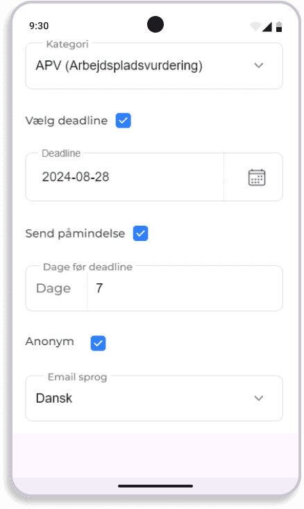 Værktøjet sender automatisk APV-skemaet ud til valgte deltagere.