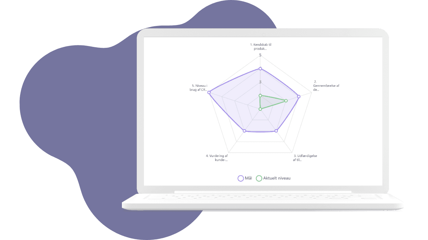 Få visualiseret udviklingen. Denne funktion viser både tidligere vurdering, aktuelle vurdering og den individuelle målsætning for pågældende medarbejder. Således er det nemt at se udviklingen over tid samt identificere områder, der kræver yderligere fokus.