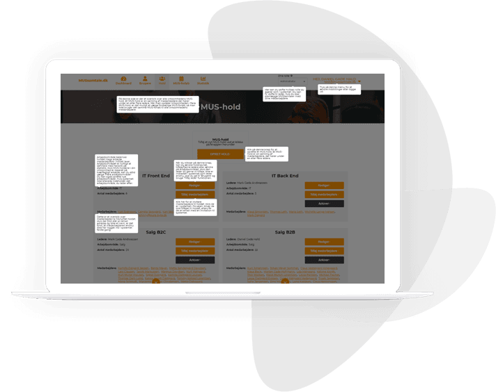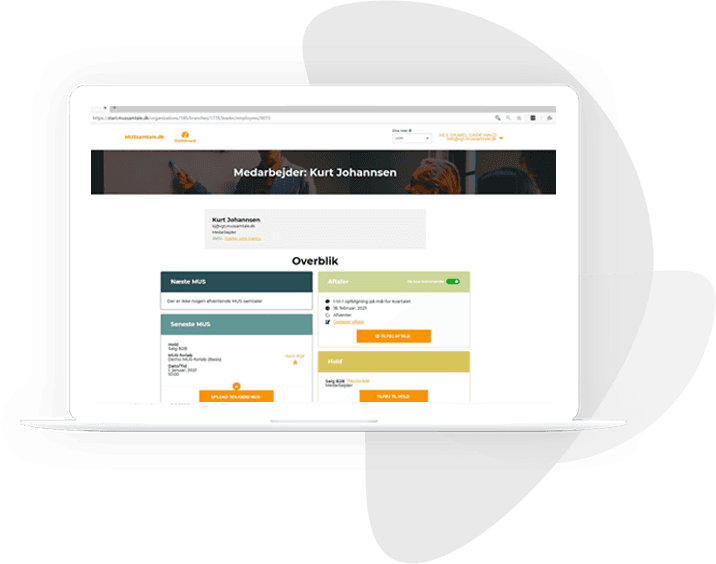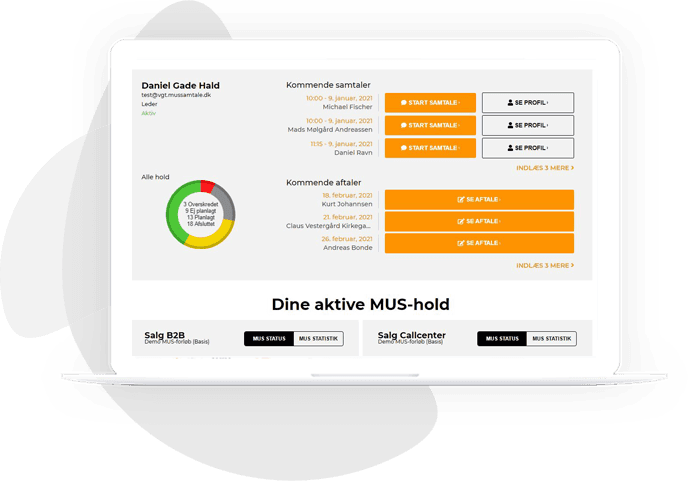 En central del af systemet er leders dashboard, hvor hver leder nemt kan få et overblik over sine MUS-hold samt kommende samtaler og aftaler. Nye samtaler kan planlægges med få klik.