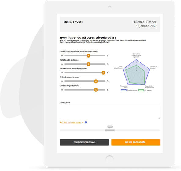 Vores intuitive modul til udviklingssamtaler hjælper ledere og medarbejdere med at holde endnu bedre MUS-samtaler. Få adgang til gode skabeloner, nem opfølgning og sikker datahåndtering i overensstemmelse med GDPR. Værktøjet hjælper med at skabe en systematisk tilgang til medarbejderudvikling, hvor både administration, forberedelse og udførelse er enkel og ligetil. Denne strukturerede proces sikrer, at alle vigtige emner bliver dækket, og at både kortsigtede og langsigtede udviklingsmål bliver defineret og fulgt op på.
