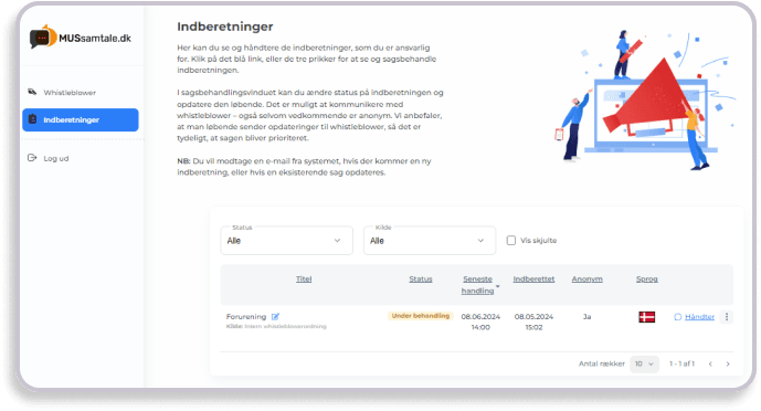 Systemets intuitive brugerflade gør det nemt for både administratorer, sagsbehandlere og whistleblower.